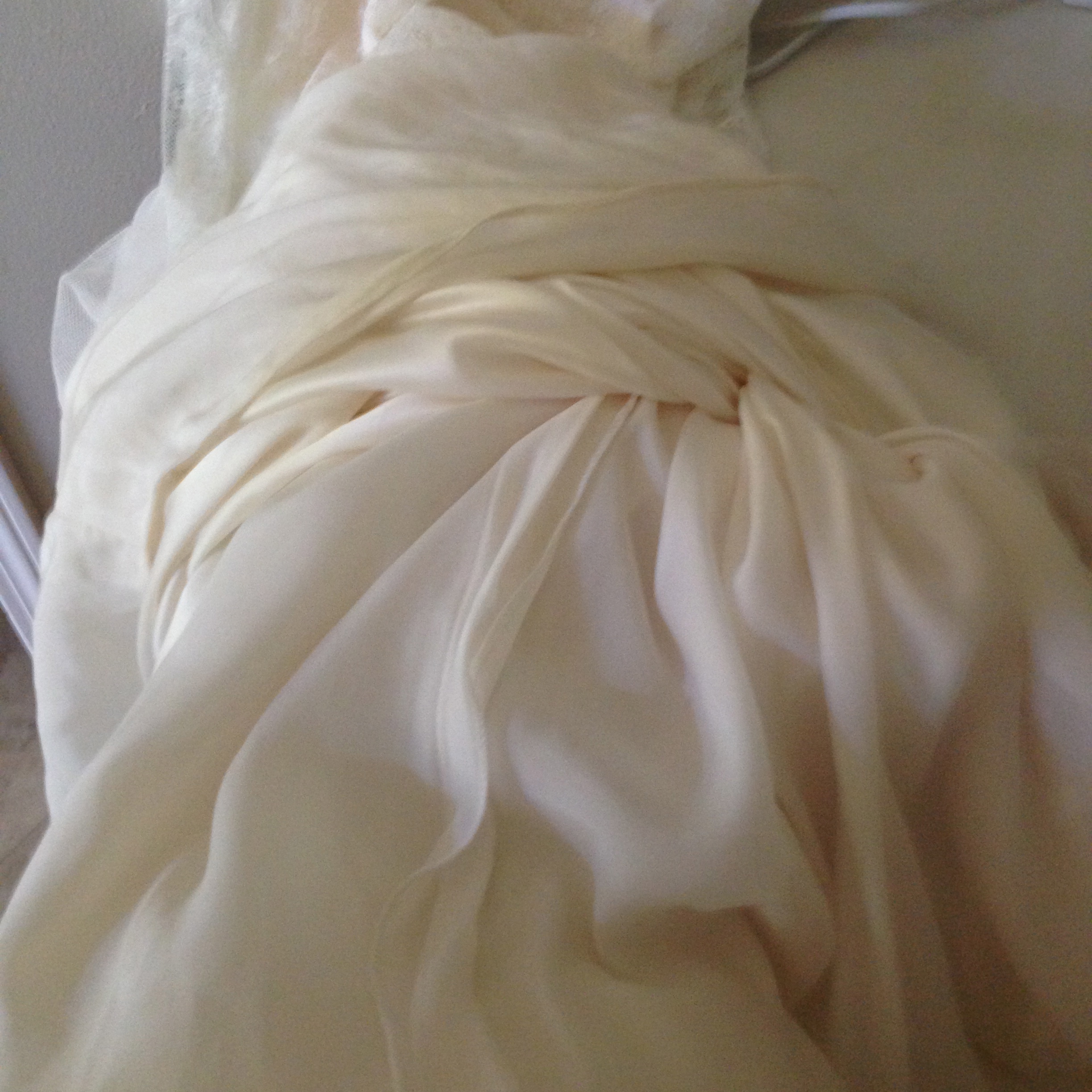 A few days ago, after nearly three years of marriage, I once again retrieved the dress. And once again I felt the shame of not having cleaned it. I could not bring myself to sell it or even give it away in that condition. So I prayed a simple prayer for wisdom and inspected the offending section yet again. With little to lose by a feeble attempt to clean the darn thing myself, I pooled the fabric in my hands beneath a slim stream of water.