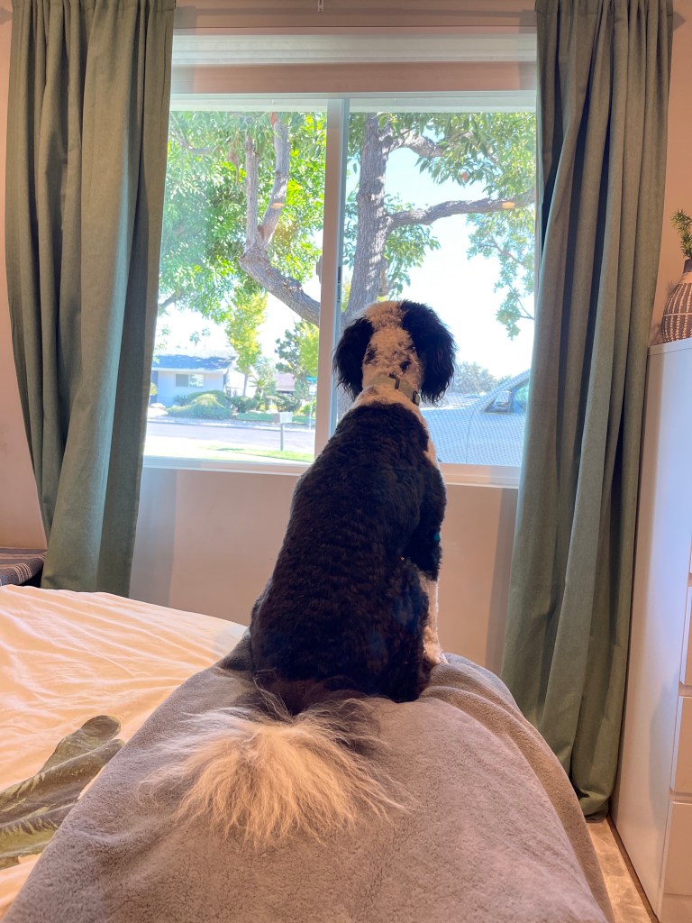 Sunny, our mini sheepadoodle puppy, isn’t the worst barker that ever lived but it does feel excessive at times – and those times can drive me crazy. Mostly, her barks are prompted by something very appealing that she’d like to explore, like the dogs or bunnies she sees out a front facing window while perched on Chase’s bed. Or some threat that she wants to alert us to, like workers coming into the backyard or the terrifying sound of a kids’ wagon being pulled along the sidewalk.