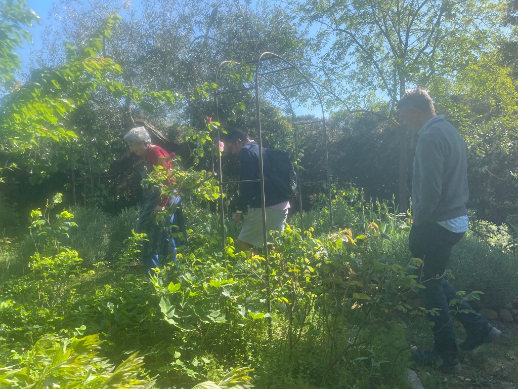 She led us through the meandering garden, pointing out vegetables growing in raised beds, a grove of trees from which she harvests her own olives for oil, rose bushes climbing up trellises and filtering the warm light. We wandered through this eden, informal and intimate, 40 years in the making by this humble woman who shared it freely with us. Sheree followed her closely, asking questions as we walked, but I hung back, listening and absorbing her presence and landscape. Overwhelmed by the beauty, spoken in what must be the language of my heart, tears kept rising from a rarely tapped well within. It felt strange to be so moved by this person and place I hardly knew, but I couldn’t seem to hold it back, nor did I want to.