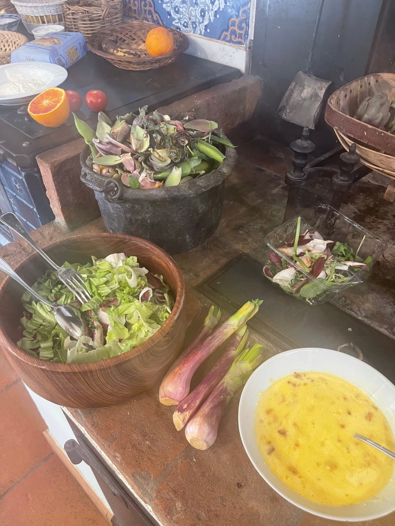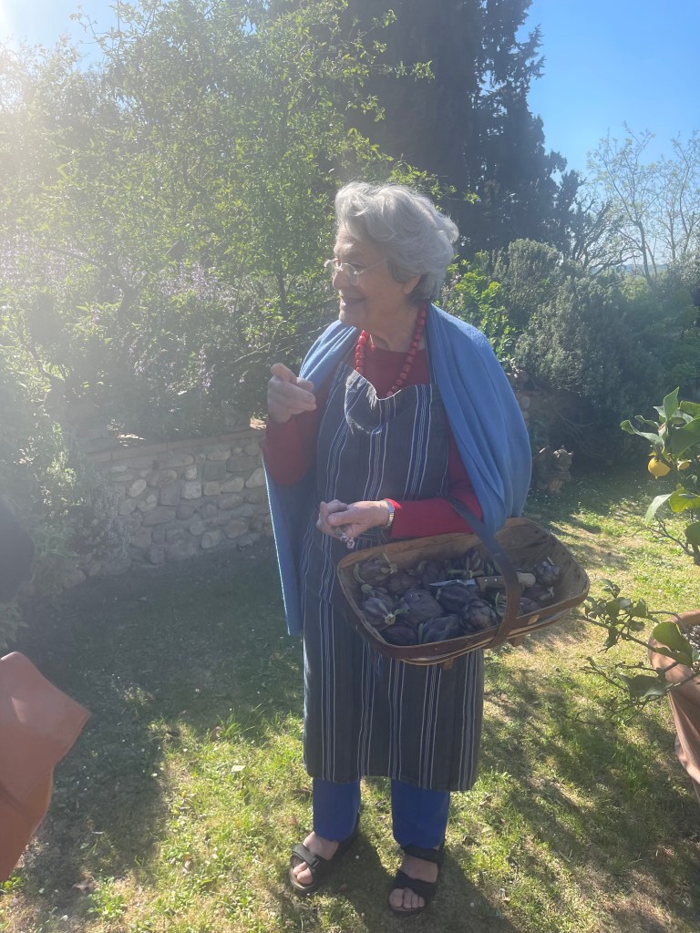 There was such a quietness, a peace, as we wandered past the ivy-covered stone walls of the 17th century farmhouse and through the courtyard lined with lemon trees in large terracotta pots to where Candida stood in her apron, sweater and sandals, a basket of freshly picked vegetables hanging on her arm and fresh herbs held loosely in her hand. She welcomed us without fanfare but with warmth, as if we were already friends – or maybe even grandkids who had come by, as usual, to spend the day gathering from the garden to make something delicious for later.