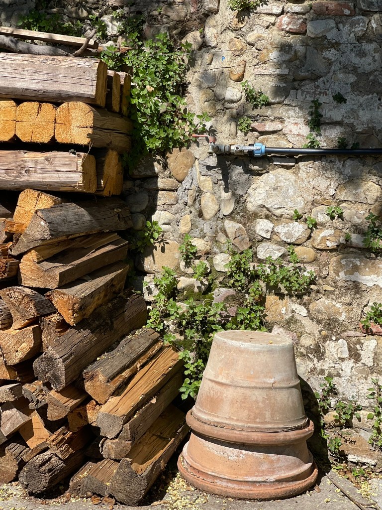 There was no rush, no timeline, unlike back home where time is money and everyone has somewhere to be. We breathed in the sweet slowness before eventually making our way through the patio into her kitchen which, though having been renovated, still felt like it belonged to this old, rustic home with open arms and stories to tell. There was an antique oven, well loved and beautifully maintained, a couple of hutches holding various glass items and Candida’s collection of classical CD’s, and more open shelving than I thought possible, not boasting perfectly curated decor but piles of plates and cooking vessels and jars and cookbooks, easily reached without fussing with doors. In the center of it all was a large wooden table that said “Yes, we have work to do, but have a glass of wine, dip your bread in some olive oil, and stay for a while.”