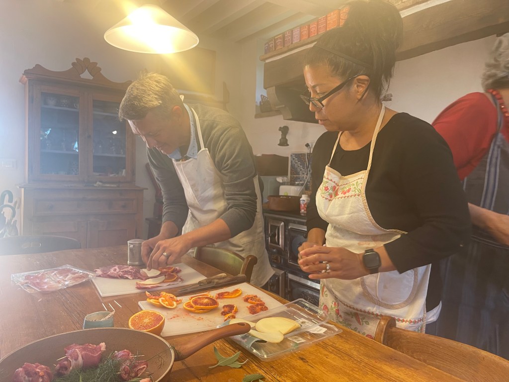 As we approached the home of Candida Bing, the instructor who would hopefully teach us to cook a scrumptious Italian meal, I recognized it as one of a few John and I had passed on our walk the day before. We had wondered aloud what sort of people owned these houses along this small road in the hills of Tuscany, whether they lived there full-time, part-time or rented them out, what they might do for a living.